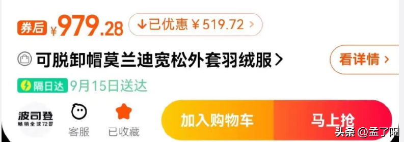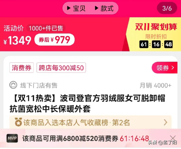 双十一期间,波司登淘宝旗舰店被曝先提价再打折仅便宜0.28元